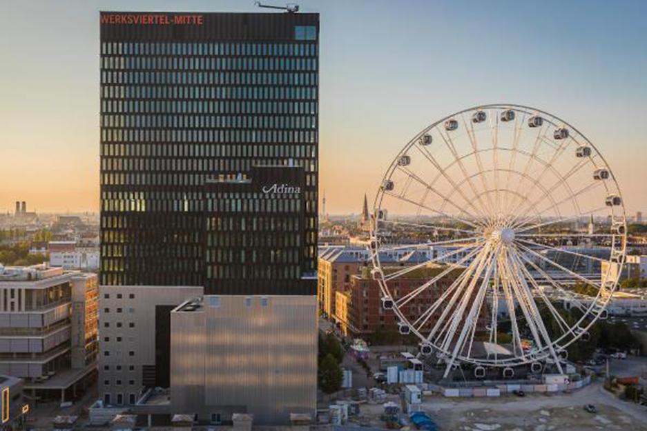 Am 1. Oktober eröffnet im Münchner Werksviertel-Mitte das neue Flaggschiff der Adina Hotels in Europa. Das 4-Sterne-Hotel Adina Munich bezieht in einem Hotelturm die Etagen 9 bis 24. Damit wird das Adina im Werk 4 des ehemaligen Industriegeländes das höchste Hotel der Stadt.