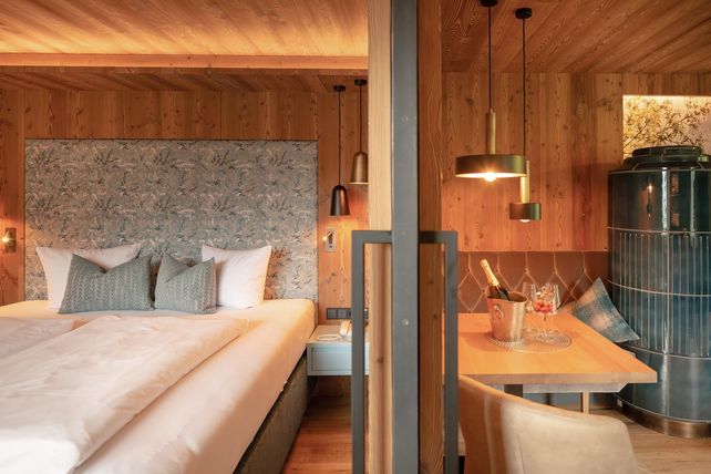 Auch die neue Suite auf 50 Quadratmetern verfügt über abgetrennte Wohn- und Schlafbereiche. Darüber hinaus bietet sie zwei Badezimmer und eignet sich damit auch für Familien und kleine Gruppen. Für zusätzlichen Komfort sorgt ein elektrisch bedienbarer Kaminofen. Alle 47 Zimmer und Suiten im Hotel Sonnenhof bieten einen Ausblick in die umliegende Bergwelt. Zudem sind alle Zimmer mit Verdunklungsvorhängen und duftenden „Zirbensackerln“ ausgestattet, um einen erholsamen Schlaf zu fördern.
