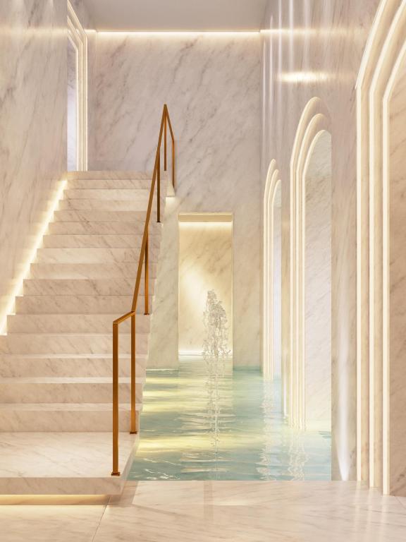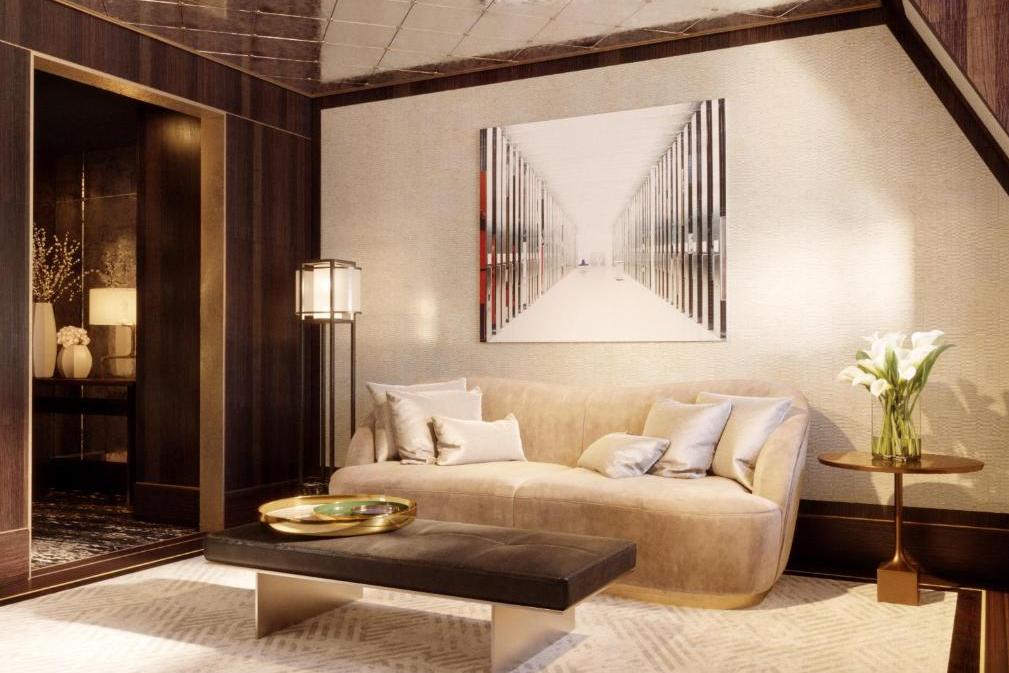 Das spanische Designbüro Beriestain hat moderne Innenräume in die Bausubstanz integriert, ohne die ursprüngliche Pracht und Geschichte zu beeinträchtigen. Das Hotel verfügt über 111 Gästezimmer und Suiten, wobei der Schwerpunkt auf den geräumigen Suiten liegt, ein luxuriöses Spa mit Innenpool und etwa 1.000 Quadratmeter Tagungs- und Veranstaltungsräume. Das Dekor ist von der österreichischen Kaiserzeit sowie von den Mosaiken Klimts und anderer zeitgenössischer Künstler inspiriert. Die Inneneinrichtung ist in warmen Farben gehalten, die mit natürlichem Licht und einer schönen Oberfläche kombiniert wurden, was zu einem luxuriösen und dennoch entspannten Interieur führt.