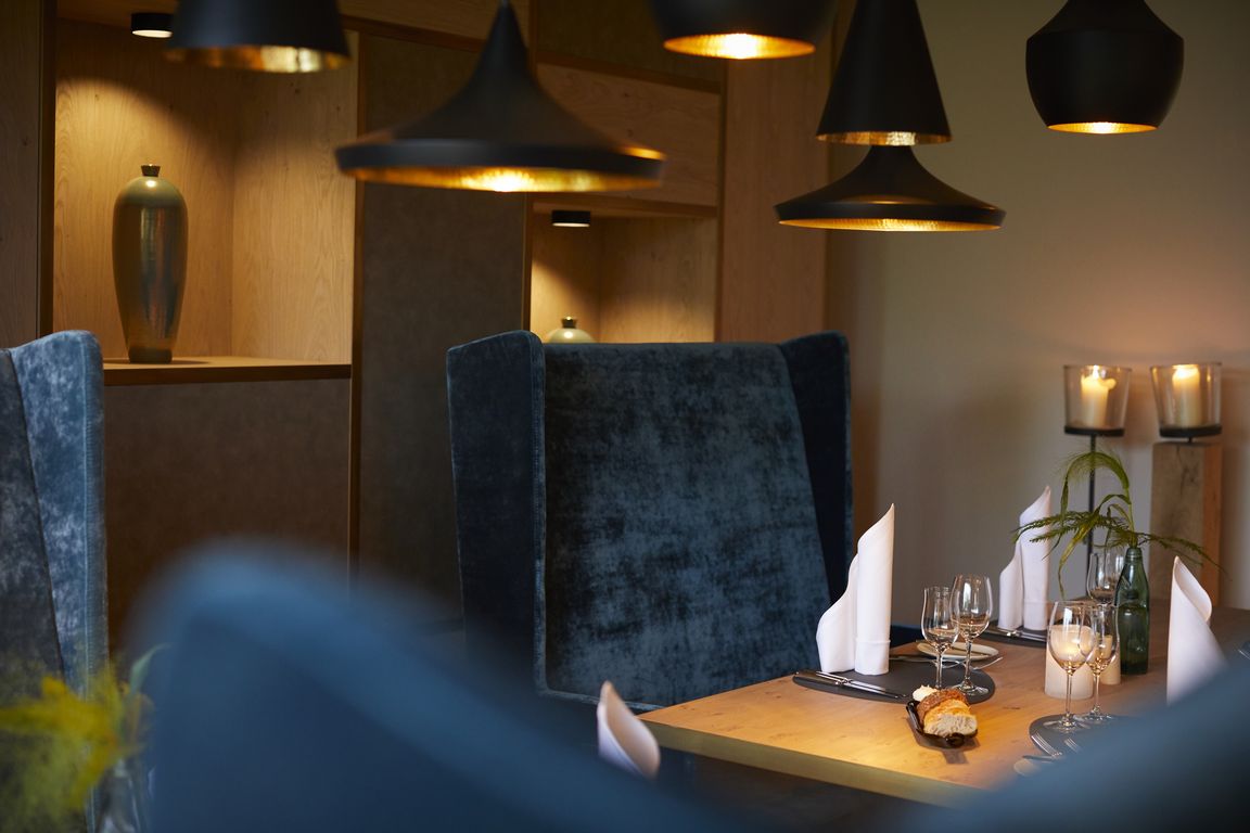 Ab Juni 2018 verwöhnt der Alpenhof seine Gäste auf 110 Quadratmetern mit einem neuen Restaurant. Große Fenster machen hier den Blick auf die Alpen frei und schenken Weite, während kleine Sitznischen und thematische Natur-Stuben den Raum mit Wärme und Gemütlichkeit füllen. Hochwertige Stoffe und Materialen von Leinen und Leder bis hin zu Holz und Felsstein kombiniert mit Schilf und Gräsern holen das Murnauer Moos direkt mit an den Tisch. Neben einer neuinterpretierten Buffet- und Menükultur überrascht der Alpenhof seine Gäste weiterhin mit den kreativen Genuss-Kreationen von Chefkoch Claus Gromotka. Die wichtigsten „Darsteller“ seiner exklusiven Küche sind die hochwertigen Zutaten. Von den heimischen Fischen aus den umliegenden Seen über das Lamm vom Nachbarsbauern bis hin zu bayerischem Urgemüse, das es sonst kaum noch zu finden gibt – im Alpenhof Murnau kommen die Zutaten frisch und aus der Region ins Haus. Auch mit seiner erlesenen Weinkarte überzeugt das Fünf-Sterne-Hotel. Ausgezeichnet mit dem „Wine Spectator's Award of Excellence“ zählt diese mit rund 900 Kompositionen zu den zehn besten Deutschlands. Verkostungen der besonderen Art finden in der hoteleigenen Vinothek statt. Dann gilt es für Kenner und Interessierte die Natur aus den Weinen zu schmecken, sei es die Grasnote eines Sauvignon Blanc oder die Mineralienstufen eines Rieslings.