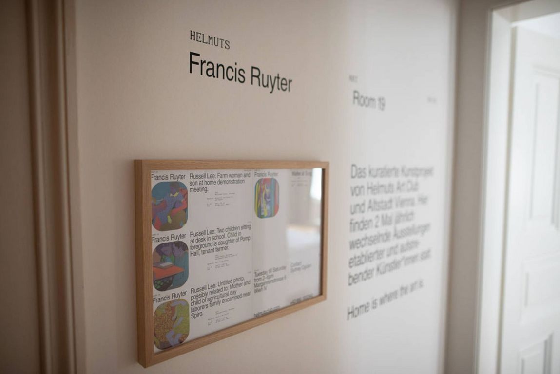 Der Wiener Künstler, der auch international bekannt ist, hat für die Helmuts Art Suite vier Werke kreiert. Alle Kunstwerke spiegeln die anhaltende Faszination mit alten Fotografien aus den Archiven der Farm Security Administration und der Library of Congress wider. Drei der Arbeiten sind nach Fotografien von Russell Lee entstanden. Ruyter konzentriert sich dabei ganz auf die Figuren, überwiegend Frauen und Kinder. Die Werke bewegen sich zwischen dem Konkreten und dem Mehrdeutigen. Ein Zusammenspiel zwischen Sehnsüchten und dem Wunsch vielleicht zufällig eine Entdeckung mit historischer Bedeutung zu machen.