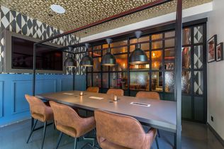 Matte olivgrüne Wände, Leder und Samt: Neudahm übersetzt die traditionsreiche belgische Stadt in sein neues Designkonzept. Mit einer Komposition aus ausgefallenen Farben, Mustern, Stoffen und Texturen kreiert er eine ausgelassene Atmosphäre. Gleichzeitig weist er in seinem Design durch die Anbringung von hochwertigen Materialien auf das traditionelle und luxuriöse Handwerk der Stadt, die seit über 500 Jahren das Diamantenzentrum der Welt ist, hin.