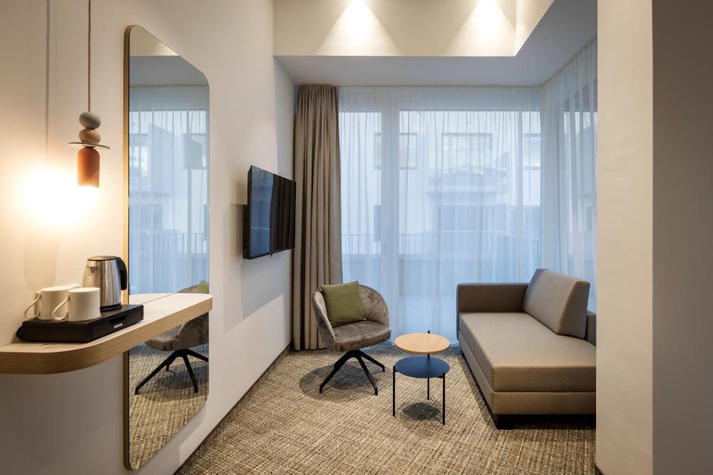 Bodentiefe Fenster, traditionelles Wiener Geflecht und zeitgenössische Kunst: Das Design und die offene Raumgestaltung des am 5. Mai eröffneten Arcotel AQ spiegeln die für Wien charakteristische Spannung zwischen Geschichte und Gegenwart wider.