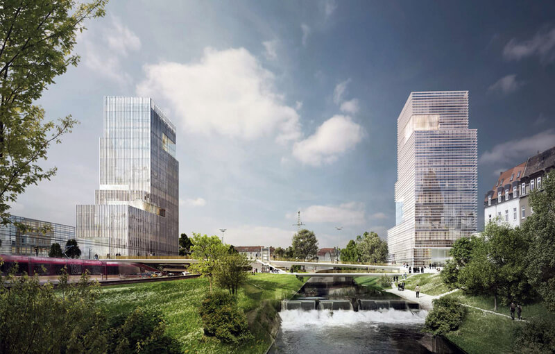 Neben dem Hotel sind im sogenannten Tower West zudem Büroeinheiten und eine gastronomische Einrichtung vorgesehen. Die Atlantic Hotel Gruppe hat ihren Sitz in Bremen, agiert als Entwickler, Investor und Hotelbetreiber in einem und möchte in dem Hochhaus unter anderem ein Angebot im 4-Sterne-Plus-Segment mit Konferenz- und Tagungsräumen verwirklichen. LEG, Investor und Stadt werden in den kommenden Monaten einen vorhabenbezogenen Bebauungsplan erarbeiten, der die Basis für die Projektrealisierung bilden wird. Der Bau zwischen dem neuen „prizeotel Erfurt-City“, das gerade in die Höhe wächst, und der Stauffenbergallee wird eine Höhe von 50 Metern haben, für den Tower Ost auf der anderen Straßenseite sind 60 Meter vorgesehen.