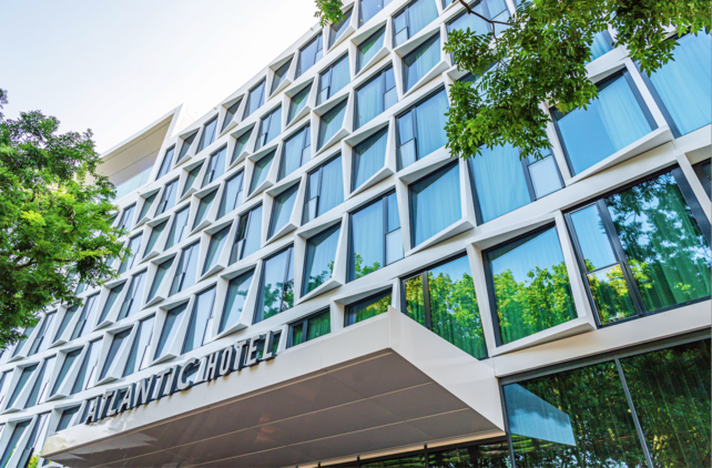Das Hotel in Münster ist das sechzehnte Hotel der Atlantic Hotels Gruppe, die in Bremen beheimatet ist. Das neue Flaggschiff im Westen der Republik umfasst 224 Zimmer und Suiten auf neun Ebenen inklusive Tiefgarage, Spa-Bereich, Restaurants und fünf Veranstaltungsräumen. Besonderes Highlight ist der 380 qm-große „Engelsaal“, ein verglaster Veranstaltungsraum mit Balkon im Dachgeschoss und angeschlossener Skybar.