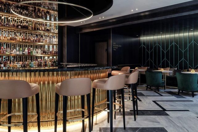 Kunst spiegelt sich auch in den Bars und Restaurants wider: Die Aether Restaurant Bar auf der Dachterrasse gibt den Blick auf die Akropolis frei und hat ganztägig geöffnet. Die Spezialität der ebenfalls ganztägig geöffneten Plato Lounge Bar sind Gin-Sorten und Cocktails. Akzente in Grün und Gold unterstreichen das in neutralen Farben gehaltene Symposium Restaurant. Das vom Guide Michelin ausgezeichnete kulinarische Team serviert gehobene Küche und verwendet dabei Zutaten wie sie schon die alten Griechen kannten.