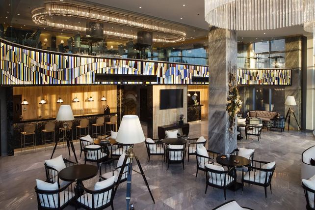 Kostenloses WLAN ist im gesamten Hotel verfügbar. Die Hotelzimmer sind mit einer Klimaanlage ausgestattet und bieten einen Blick auf das Meer und die Promenade. Außerdem gibt es ein Restaurant, einen bewachten Parkplatz, ein Hotel-Businesscenter und einen Bankettsaal. Die Hotelsuiten umfassen einen privaten Essbereich, eine finnische Sauna und einen Whirlpool.