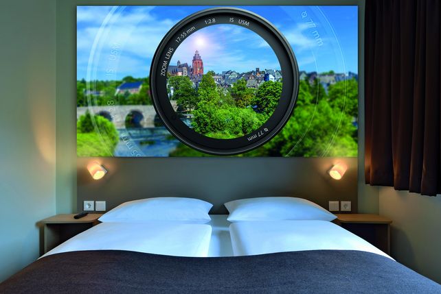 Insgesamt verfügt das B&B Hotel Wetzlar über 98 Einzel-, Doppel-, Familien- und behindertengerechte Zimmer. Auf dem Wandpaneel, welches jedes Zimmer des Hotels ziert, ist der Blick auf die Lahn sowie die Altstadt mit dem Dom zu sehen. Das B&B Hotel Rostock-Hafen verfügt über 140 Einzel-, Doppel-, Familien- und behindertengerechte Zimmer. Das Wandpaneel zeugt hier die Einfahrt in den Rostocker Hafen.