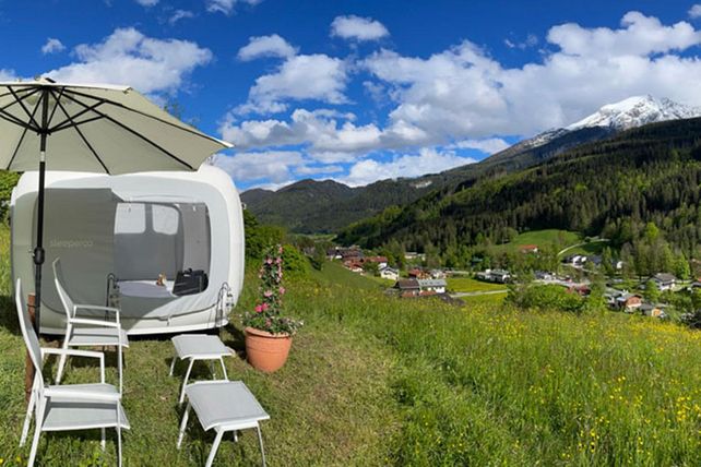 Das Berghotel Rehlegg aus der BW Premier Collection bietet seinen Gästen ab sofort auch eine Schlafkapsel zum Übernachten in freier Natur und vor der Alpen-Kulisse mit Blick auf Watzmann und Co. Die Schlafkapsel, die das Hotel in Kooperation mit dem Anbieter Sleeperoo seit Kurzem hinter dem Hotel aufgestellt hat, bietet Platz für zwei Personen.
