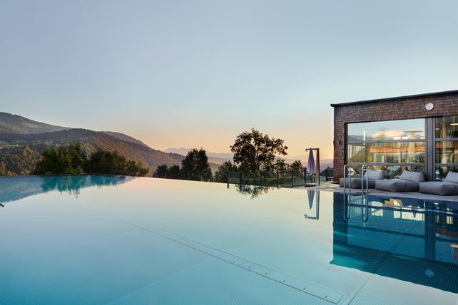 Auf 850 Höhenmetern in Alleinlage liegt das Vier-Sterne-Superior Hotel Bergkristall in Oberstaufen und will die Allgäuer Wurzeln mit zeitgemäßem Design und unverbauter Natur verbinden. Seit dem großen Um- und Ausbau 2018 der Bergkristall Lodge und Residence empfängt das von Familie Lingg in dritter Generation geführte Resort seine Gäste mit modernem Interieur in 68 Zimmern und Suiten. Als eine der Top-Wellness-Adressen in Bayern punktet das Haus durch das einladende 2.000 Quadratmeter große Kristall Spa und beeindruckt mit weiteren Highlights wie dem Outdoor-Infinitypool sowie der großen Event-Outdoorsauna mit Blick auf den hauseigenen Wildpark und Platzhirsch Hansi. Neben der Expertise für Schrothfasten interpretieren die Gastgeber regionale Spezialitäten nach dem Glyx-Prinzip kulinarisch neu. Ohne die Verwendung von raffiniertem Zucker und Weißmehl liegt der Fokus auf leichtem Genuss ohne Verzicht.