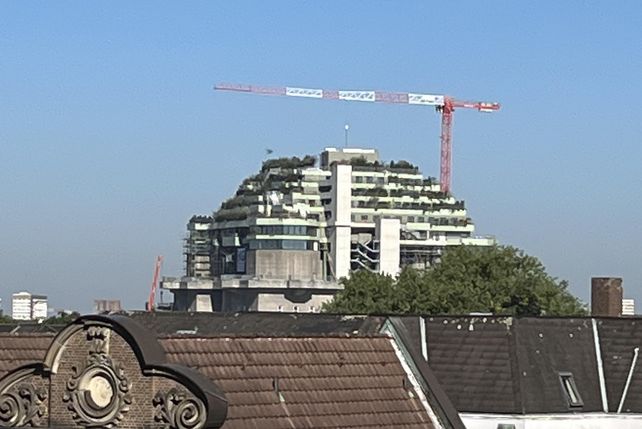 Die Fertigstellung des grünen Bunkers im Hamburger Kultstadtteil St. Pauli rückt näher. Nun haben zwei schwere Treppen die letzten Lücken des sogenannten Bergpfades geschlossen. Für das demnächst von RIMC betriebene Reverb by Hard Rock-Hotel gibt es immer noch kein Eröffnungsdatum.