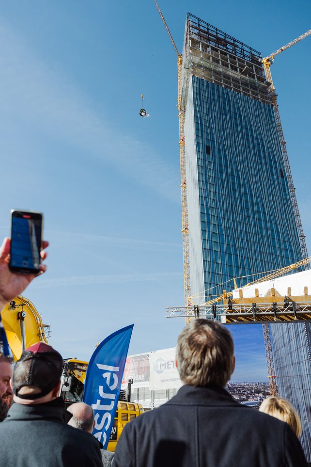 Die Begrüßung und Einstimmung der 550 geladenen Gäste und am Bau Beteiligten übernahmen verschiedene Redner. Allen voran die Gastgeber und Bauherren Ekkehard und Maxim Streletzki: „Heute ist ein besonderer Tag, ein wichtiger Meilenstein. Denn jedes Bauvorhaben dieser Größe ist eine enorme Herausforderung. Wir sind unglaublich stolz auf das, was wir bislang dank der hervorragenden Zusammenarbeit aller beteiligten Firmen und dem Herzblut besonders unsere Bauleute hier vor Ort erreicht haben“, so der Sohn des Estrel Berlin Gründers. „Bis zur Fertigstellung haben wir noch eine ganze Menge vor uns, doch wir sind optimistisch, dass ab Mitte 2026 der Estrel Tower seine ersten Gäste begrüßen wird.“