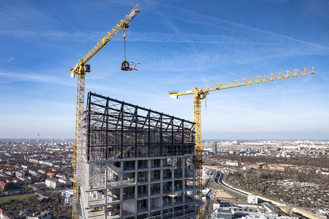 Bis Sommer 2026 entsteht neben dem Estrel Berlin, Europas größtem Hotel-, Entertainment- & Congress-Komplex, der neue Estrel Tower. Mit einem Richtfest feierte nun Berlins erster Wolkenkratzer einen weiteren bedeutenden Baufortschritt: die Fertigstellung des Rohbaus sowie die Errichtung des Dachstuhls.