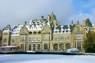 Gebaut wurde das im englischen Tudorstil gestaltete Juwel – das heutige Schlosshotel Kronberg – Ende des 19. Jahrhunderts von Victoria Kaiserin Friedrich, der ältesten Tochter von Queen Victoria, die wiederum die Urururgroßmutter des heutigen King Charles III. war. Noch heute ist die britische Vergangenheit deutlich zu spüren und so verwundert es nicht, dass das Schlosshotel Kronberg als Location für den Dreh ausgewählt wurde. Als Kulisse dienten verschiedene Bereiche des Hotels, darunter die Empfangshalle, die Bibliothek und der rote sowie der grüne Salon. General Manager Dominik Ritz erinnert sich: „Die Filmarbeiten waren ein überaus spannendes Erlebnis für unser gesamtes Team. Ein paar Details mussten für die Aufzeichnung im Haus angepasst werden, zum Beispiel die offensichtlich deutschen Steckdosen, aber in den meisten Räumen wurde kaum etwas verändert. Die extra für den Film hergestellten und entlang der großen Treppe angebrachten Gemälde sind bis heute zu sehen.