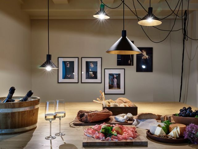 Familie Bonfanti stammt aus Bergamo und setzt in ihrem Hotel in den Dolomiten ein Statement für Genussurlaub in den Bergen. Es wäre wohl kein Hotel mit „italienischen Wurzeln“, würden nicht Küche und Keller die Feinschmecker zum Schwärmen bringen. Der Chefkoch, Maurizio Lauriola, kommt aus Apulien. Mit traditionellen Südtiroler Spezialitäten, die er auf moderne Art zubereitet, und mit italienischen Köstlichkeiten wird er seine Gäste verzaubern. Der süditalienische Küchenkünstler schmiedet bereits Pläne von mediterranen Fischspezialitäten bis zum traditionellen Tiroler Abend. Der Geschäftsführer des Hauses, Jan Vlasak, ist Sommelier. Er stattet eigenhändig die erlesene Vinothek des Hotels mit über 100 verschiedenen edlen Tropfen vom Lagrein bis Sassicaia und vom Gewürztraminer bis zum Gaja Rossj Bass Langhe DOC Chardonnay aus. Weinverkostungen, zu denen die besten Tropfen geöffnet werden und vom feinen San Daniele Schinken bis hin zu lokalen Köstlichkeiten schmackhafte Gaumenkitzel gereicht werden, sind ein fixer Bestandteil des kulinarischen Verwöhnprogramms im Bonfanti Design Hotel.