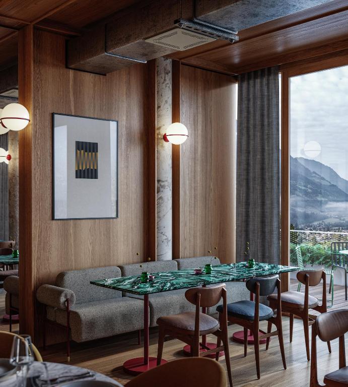 Im Restaurant werden traditionell hergestellte Weine, klassische Cocktails und moderne alpine Küche gepaart. Hier dreht sich alles um den sogenannten "Farm-to-Table"-Ansatz, bei dem Nachhaltigkeit oberstes Gebot hat. Die Zutaten werden frisch von lokalen Landwirten und Produzenten bezogen.