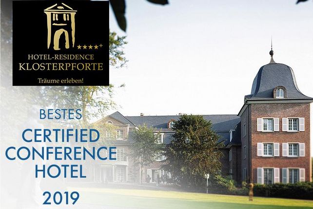 Die Hotel-Residence Klosterpforte im nordrhein-westfälischen Marienfeld, unweit von Gütersloh und Bielefeld gelegen, räumt durch den neu eröffneten Tagungs- und Eventtrakt „Klosterforum“ bei der Prüfung im August 2019 mit satten 2.354 von 2.500 möglichen Punkten ab: „Das Hotel Klosterpforte ist ein sehr schönes, familiär geführtes Hotel im Grünen. Die exklusive Anordnung des Hauses auf dem großen Gelände einer alten Klosteranlage ist einmalig und wunderschön. Durch die Lage im Grünen ist es perfekt für Konferenzen geeignet und der Park lädt zum Entspannen ein. Das Personal ist sehr serviceorientiert und man fühlt sich direkt sehr wohl. Aus meiner Sicht ist das Hotel absolut zu empfehlen und durch die Kombination von Historie und Moderne mehr als gelungen...", schreibt Prüfer Salvatore Ruggiero, Vice President Corporate Marketing der SCHOTT AG, in seinem Prüfbericht.