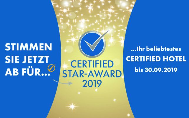 Bis Ende September können zertifizierte Hotels so viele Stimmen wie möglich zur Wahl zum beliebtesten Certified Hotel sammeln. Zur Wahl stehen 52 Hotels in den Kategorien Certified Business, Certified Conference und Certified Green Hotel.