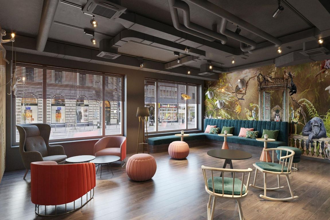 „Das markante Interior-Design nimmt mit seinen botanischen Mustern, künstlerisch gestalteten Tapeten und Gold als Akzentfarbe zu den dunklen Grüntönen das Thema des Urban Jungle auf und stammt vom Hamburger Büro JOI-Design. „Dabei fungiert das Motiv des Großstadtdschungel einerseits als Referenz an die pulsierende Metropole Berlin“, erläutert Anja Müller das Design-Konzept. „Gleichzeitig wirken die naturnahen Farben und Muster beruhigend. Damit setzen wir einen Kontrapunkt zur Hektik der Großstadt und unterstreichen den Charakter von 'Stayurban Charlotte Gold' als Rückzugs- und Ruheort für seine Bewohnerinnen und Bewohner.“