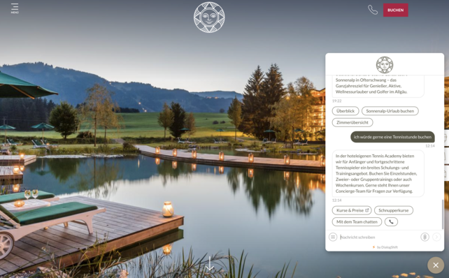 So wird die Konversation mit dem Chatbot möglich. Stellt ein Gast beispielsweise die Frage „Haben Sie eine Restaurantempfehlung für mich?“, versteht der Chatbot die Frage und spielt dem Gast unmittelbar die entsprechende Antwort im Chat aus. Der Chatbot lernt durch die KI kontinuierlich dazu und kann eine große Bandbreite an Fragen abdecken.