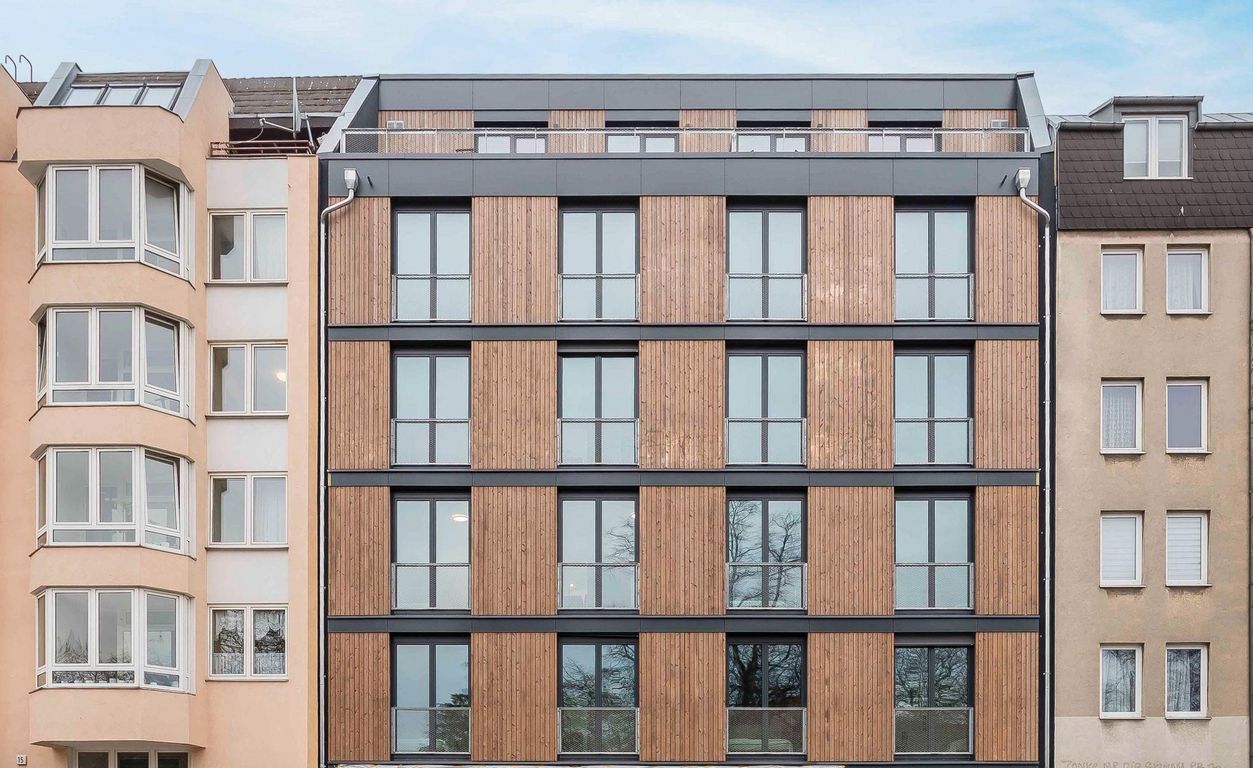 Co-Living-Anbieter Habyt wurde 2017 in Berlin gegründet und hat in der Hauptstadt gerade ein neues Gebäude eröffnet. Das Haus wurde komplett renoviert und sticht durch eine modulare Holzfassade heraus. Es ist in zwei Teile gegliedert – in ein Vorderhaus und ein Gartenhaus mit Maisonette-Wohnung, beide Immobilien sind mit industrieller Sichtbetonoptik und Holzdecken ausgestattet. (Tageskarte berichete)