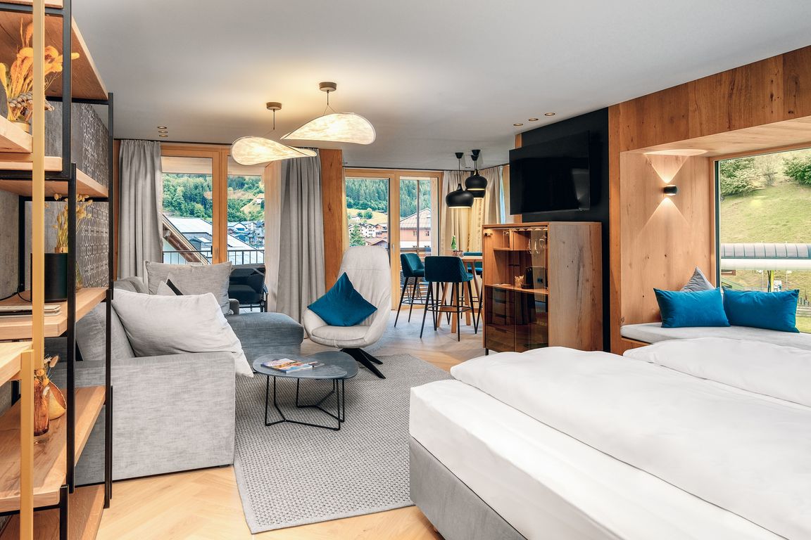 Im Zuge der Modernisierungsmaßnahmen entstanden aus 26 bestehenden Zimmern 17 Junior- und Familiensuiten mit bis zu 110 Quadratmetern für bis zu fünf Personen. Die drei Einheiten aus der Kategorie Top Suite Deluxe stellen das neue Highlight dar und warten mit einer 50 Quadratmeter großen Terrasse mit privatem Whirlpool und Liegen, einem Kamin mit Effektfeuer und einer Couchlandschaft im Wohnraum, zwei getrennten Schlaf- und Badezimmern, eigener Sauna, sowie einem Essbereich auf.