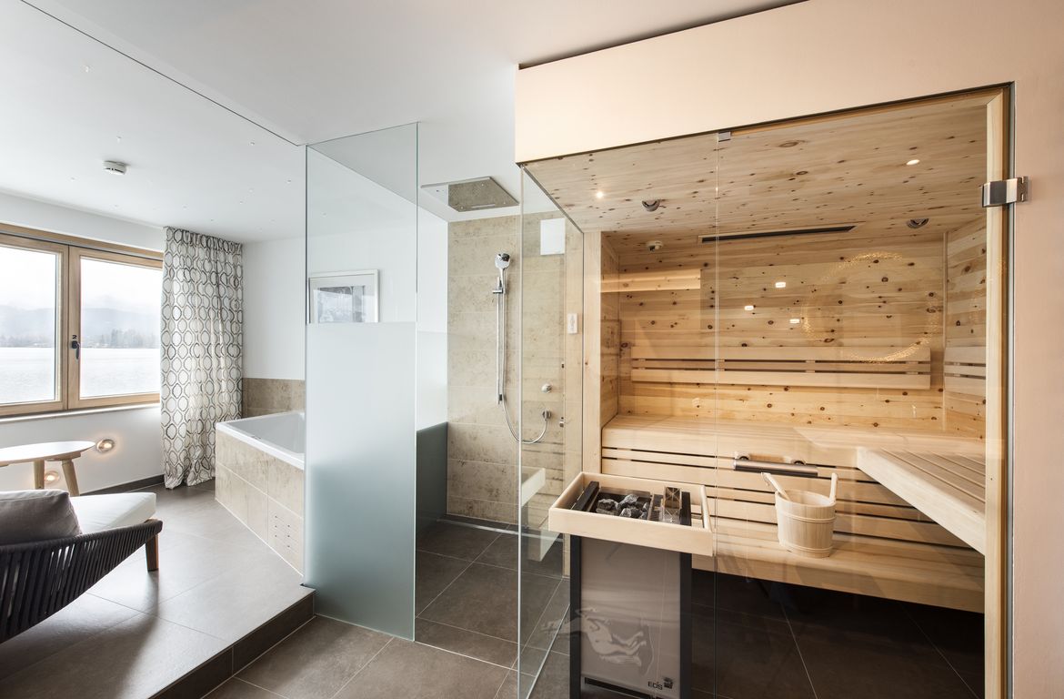 Für Ratschläge und Anregungen hat die Rösslwirtin ein offenes Ohr. So entstand auch die Idee zur neuen Spa-Suite mit Veranda zum See. Die 81 Quadratemter große Suite zeichnet sich durch einen eigenen Wellnessbereich mit Sauna, Dampfbad, Infrarotkabine und Whirlpool aus.