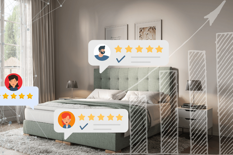Die Hotelbewertungen verbessern sich: Zufriedene Gäste hinterlassen positive Bewertungen. Unsere Auswertung bei einigen Beispiel Hotels hat gezeigt, dass teilweise bis zu 20% der Gäste das Schlaferlebnis in Ihre Bewertung einfließen lassen. Nicht umsonst hat Booking.com eigene Bewertungsfilter, bei denen man vorab nach den Themen "Kissen" und "Matratzen" filtern kann. Durch bei Gästen beliebte Kissen sammeln diese tendenziell Pluspunkte für eine positive Bewertung, die Ihrem Hotel nach dem Aufenthalt zugutekommt.