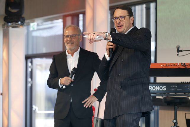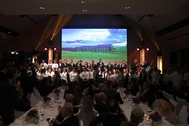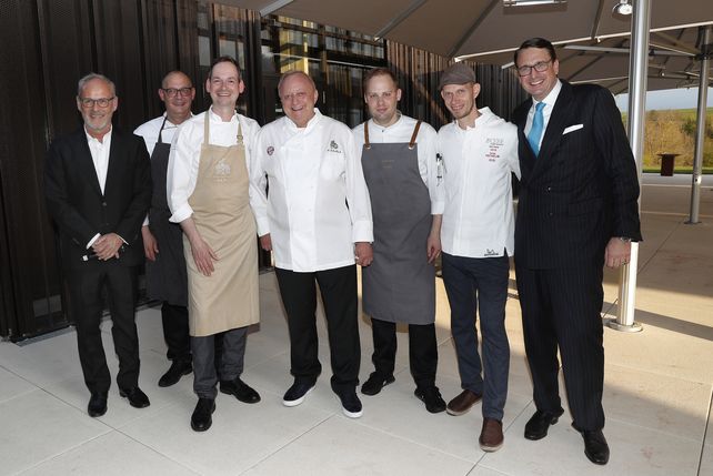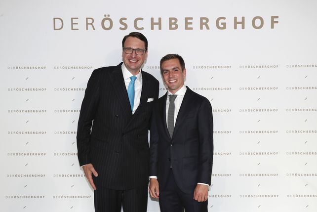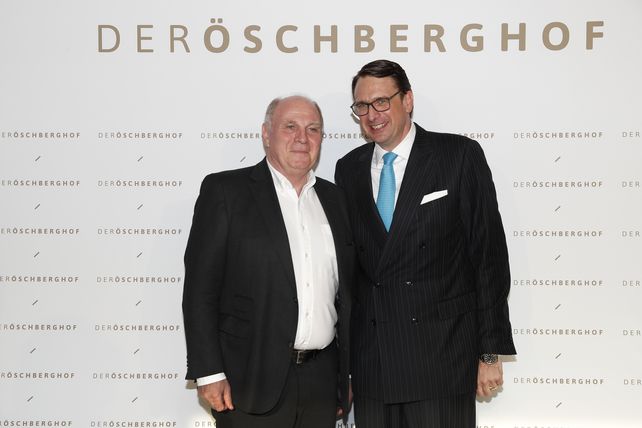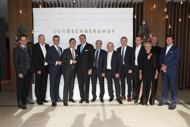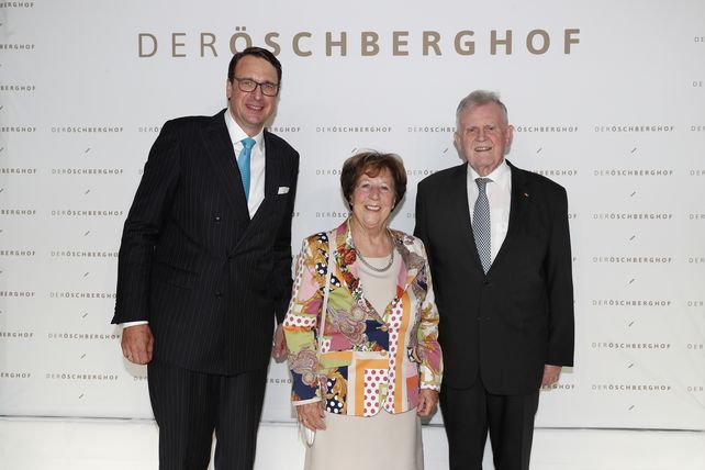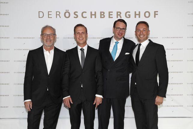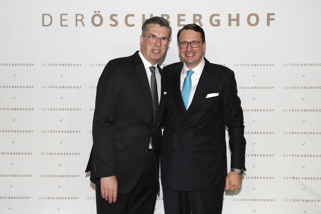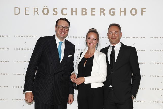 Jetzt präsentiert sich dase inzigartige Luxusresort mit umfangreichem Golf-, Spa- und Tagungsangebot in neuem Glanz und lud zu diesem Anlass zu einer großen Eröffnungsfeier ein. Auftakt des „Grand Openings“ war der große Gourmetabend im Fine Dining Restaurant ÖSCH NOIR. Küchenchef Manuel Ulrich und sein Team kreierten ein wahres kulinarisches Feuerwerk aus seiner modernen französisch inspirierten Küche, der Schweizer Sommelier Michael Häni überraschte mit einer außergewöhnlichen Weinbegleitung und Gastgeberin Marina Hentsch sorgte mit ihrer jungen Brigade für den erfrischenden, aber selbstverständlich reibungslosen, Service. Anschließend waren sich alle Genießer einig: Den Namen ÖSCH NOIR sollte man sich merken. Den großen Gala-Abend am Freitag eröffnete das festliche Defilee über den goldenen Teppich: Zahlreiche geladene Gäste aus Politik, Wirtschaft, Sport und Gesellschaft sowie eine Reihe namhafter Hotelgrößen erwiesen dem Öschberghof die Ehre. TV-Moderator und Journalist Reinhold Beckmann führte zusammen mit Hausherr Alexander Aisenbrey mit einer überaus launigen Moderation durch den Abend und begrüßte neben den Ministern Guido Wolf und Erwin Teufel (a.D.) zahlreiche Lokalpolitiker, namhafte Unternehmer aus der Region auch Fußballgrößen wie Ulrich Hoeneß, Philipp Lahm und Clemens Tönnies. Dazu feierten ebenfalls namhafte Hoteliers aus ganz Deutschland, wie zum Beispiel Karl Nüser, Ingo C. Peters (Fairmont Hotel Vier Jahreszeiten Hamburg), Cyrus Heydrian (Breidenbacher Hof, Düsseldorf) und Dieter Müller-Elmau (Schloß Elmau) mit.