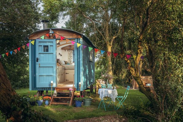Auch die Gastgeber von Schäferhütten freuen sich über steigende Buchungszahlen. Gäste auf der Suche nach Digital Detox können auf der ganzen Welt in romantischer Wildnis übernachten. Mitten im grünen Cornwall steht diese liebevoll gestaltete Schäferhütte von der aus Gäste Zugang zum Badesee, einem privaten Garten mit offenem Kamin und holzbefeuerten Whirlpool haben.