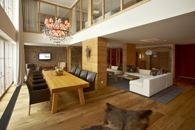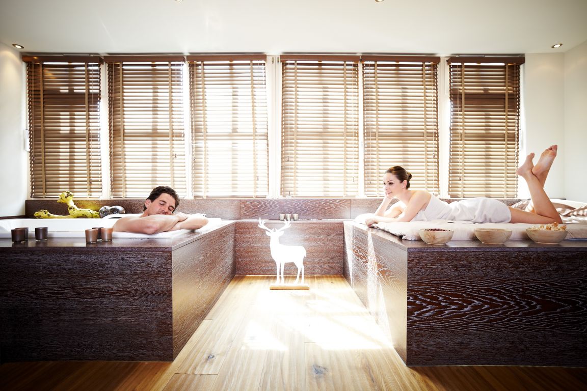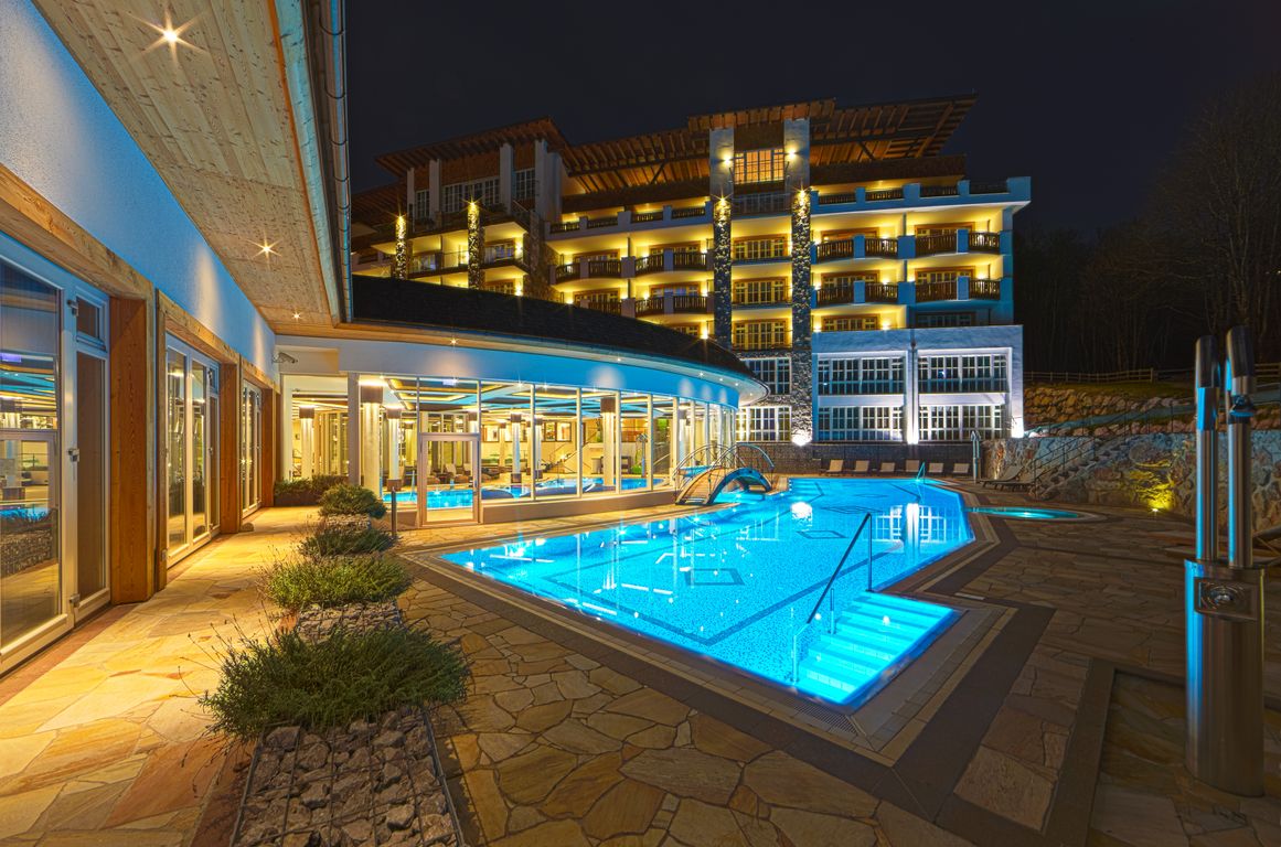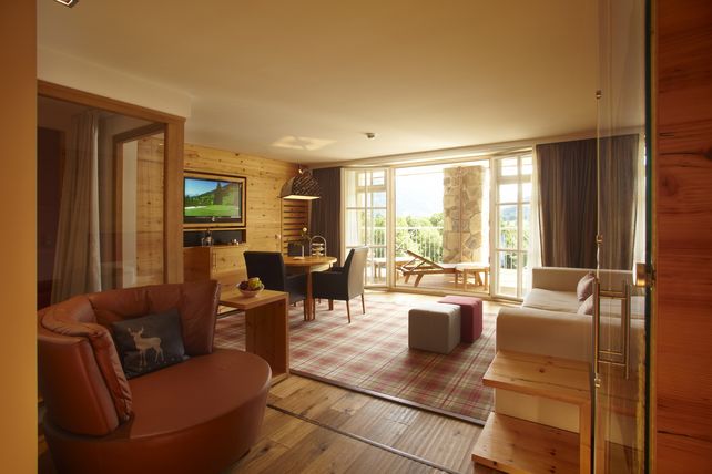 Das Spa-Zentrum, verteilt auf fast 2.500 Quadratmetern, umfasst Innen- und Außenpools, 11 Behandlungsräume und 6 Saunen. Direkt neben dem Hotel befindet sich der 18-Loch Golfplatz Eichenheim, einer von vier in Kitzbühel.