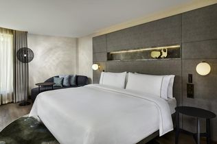 Die über zwei Etagen reichende Lobby verfügt über deckenhohe Fenster, die den Blick auf die Umgebung freigeben. Naturtöne verströmen ein Gefühl von Ruhe. Die Möblierung zeigt sich von der Natur inspiriert mit Eichenvertäfelungen, Grüntönen, mattem Finish und geschwungenen Linien. Winkelfenster lassen in den Zimmern den Blick über das Treiben auf den Straßen schweifen. Zudem stehen neun unterschiedlich gestaltete Apartments zur Verfügung.