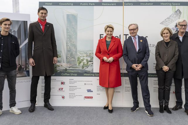 "Der Estrel Tower ist eine große Chance und ein großes Geschenk für Berlin", sagte Franziska Giffey, die das Projekt u.a. als ehemalige Bürgermeisterin von Neukölln seit zehn Jahren begleitet. "Wir wollen den Neustart für die Hauptstadt, das muss auch ausstrahlen auf das Gesicht der Stadt. Und das hier wird ein Teil des Gesichts von Berlin." Auch Giffeys Nachfolger Martin Hikel fand viele positive Worte: "Es macht mich als Bürgermeister von Neukölln sehr stolz, dass der Tower in meinem Bezirk steht und dieses Areal zu einem neuen Zentrum wird."