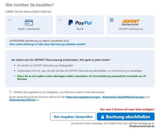 Ein kleiner Test zeigt aber: Auch führende Hotelgruppen halten sich in Deutschland nicht an die Button-Lösung, wie sie vom Gesetzgeber gefordert wird. Marktführer Accor beschriftet seine Buttons mit einem einfachen „bestätigen“