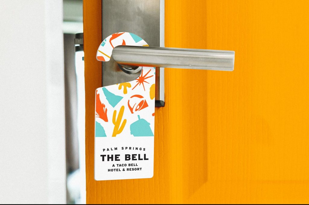 Das Taco Bell-Branding wird im bei „The Bell“ sowohl essbare als auch nicht essbare Angebote umfassen. In einem Geschäft soll Taco-Bell-Kleidung verkauft werden, und ein „Schönheitssalon“ wartet mit Taco-Bell-Nagelkunst auf. Was das Essen angeht, so wird das Speisen- und Getränkeprogramm des Hotels natürlich alles bieten, was Taco Bell so auf der Speisekarte hat und einige Neuerungen einführen. Das Taco Bell Hotel and Resort wird in ein bestehendes Hotel in Palm Springs einziehen. Insgesamt wird das „The Bell“ nur für fünf Tage geöffnet sein.
