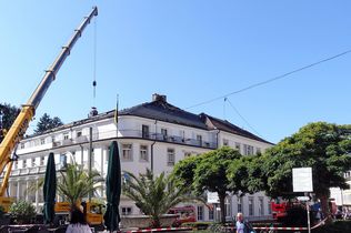Der Brand war am Morgen gegen 2.45 Uhr ausgebrochen, die Flammen schlugen zwischenzeitlich lichterloh aus dem Dachstuhl des Gebäudes heraus. In Bademänteln und Schlafanzügen standen Hotelgäste zunächst auf der Straße, sie wurden vom Roten Kreuz betreut.
