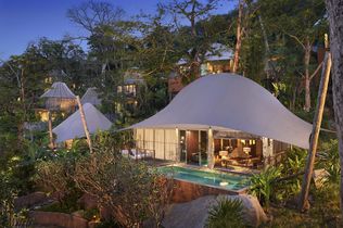 In den rustikal-eleganten Cottages spielen Erd- und Naturtöne somit eine prominente Rolle, aufwendige Holzschnitzereien und Dekoelemente im Ethnodesign lockern das gleichmäßige Farbbild auf. Die Cottages bieten außerdem eine fantastische Aussicht auf den üppigen Regenwald. Auch die anderen Unterkünfte des Resorts sind auf ihre Art in Sachen Architektur und Design einmalig, sodass man während des Aufenthaltes im Keemala am liebsten sämtlichen Zimmer und Villen ausprobieren möchte.