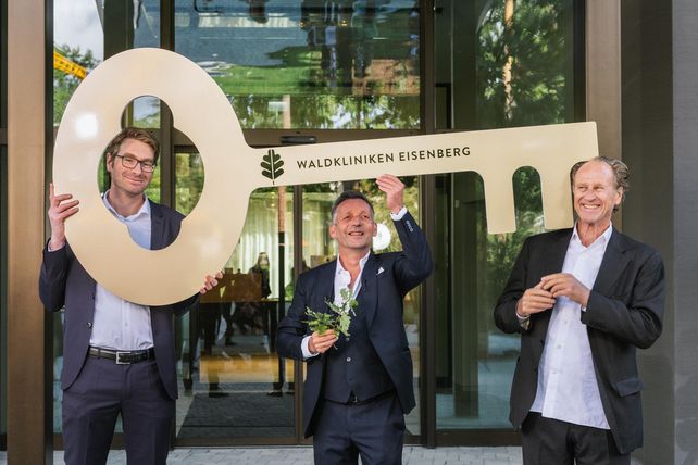 Ab Ende Oktober vereinen die Waldkliniken Eisenberg damit erstmals Medizin mit zwei hochklassigen Hotels in einem Neubau, der in der deutschen Krankenhauslandschaft neue Maßstäbe setzen will. Das Hotel wird grundsätzlich öffentlich betrieben. Mit dem Konzept wollen die Waldkliniken die Patienten- und Gästezufriedenheit auf ein neues Level heben. Deshalb wurde der kürzlich fertig gestellte Neubau auch als Patientenhotel der Waldkliniken Eisenberg und eben nicht als „Bettenhaus“ gebaut.