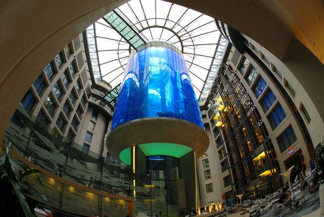Das 16 Meter hohe Aquarium Aquadom mit 1500 Fischen in dem Hotel nahe dem Alexanderplatz war am 16. Dezember in den frühen Morgenstunden geplatzt. Daraufhin ergossen sich eine Million Liter Wasser aus dem zerstörten Acrylglas-Zylinder unter anderem in das Hotel und auf die Straße. Zwei Menschen wurden leicht verletzt. In dem Gebäudekomplex wurden mindestens sechs weitere Läden beschädigt. Das Unglück sorgte international für Aufmerksamkeit (Tageskarte berichtete).