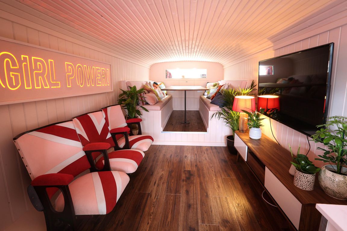 Rosafarbene Union-Jack-Kinostühle, eine „Girl Power“-Neonlichtinstallation sowie Vintage-Zeitschriften und -CDs der 90er Jahre: Der kürzlich renovierte Wohnbereich des Spice Bus’ erweckt das Gefühl des Jahrzehnts wieder zum Leben. Grünpflanzen und Sitzbereiche mit knalligen Statement-Kissen laden im Untergeschoss zum Entspannen ein. Im oberen Bereich erwartet die Gäste ein Ankleidebereich mit angrenzendem Schlafzimmer. Insgesamt können in der Unterkunft bis zu drei Personen übernachten.