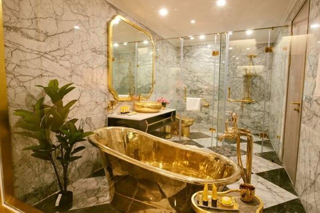 „Derzeit gibt es kein anderes Hotel mit einer vergoldeten Fassade auf der Welt. Die Badezimmer im Innenbereich sind mit vergoldeten Waschbecken und Toiletten ausgestattet. Es handelt sich also um das spektakulärste, einzigartigste und aufwendigste Hotel der Welt“, erklärt Nguyen Huu Duong, Besitzer des „Dolce Hanoi Golden Lake Hotels“ laut Spiegel.de.