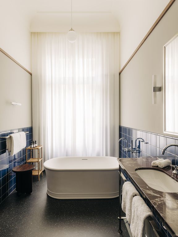 „Wir wollten bei der Gestaltung diese Zeit des Berlin um die Jahrhundertwende einfangen – und auch besonders typische Materialien verwenden“, erklärt Kromayer gegenüber der Vogue. Die Renovierung sowie der Neubau des britischen Architekten David Chipperfield, der das Verbindungsstück zwischen den denkmalgeschützten Gebäuden bildet, dauerte insgesamt vier Jahre. Davor stand das Gebäude leer. „Uns war es wichtig, dass hier jede und jeder seine eigenen Lieblingsplätze finden kann“, sagt Kromeyer in dem Bericht weiter.