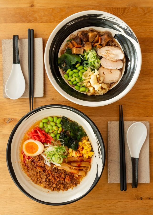 Auch im Erdgeschoss der Grindellodge, aber als eigenständiger Betrieb, herrscht japanische Stimmung. Das Restaurant «Umami», das zeitgleich mit dem Hotel eröffnet, wird vom Tokioter Koch Shota Hasegawa geführt. Sein «Japanese Ramen & Sushi»-Menü bietet Nudelsuppen und frisches Sushi. Auch die Donburi-Reisschalen und die krossen Tempura erfreuen Auge und Gaumen. Als erstes japanisches Restaurant in Grindelwald ist das «Umami» sowohl Hotelgästen als auch externen Besuchern zugänglich.