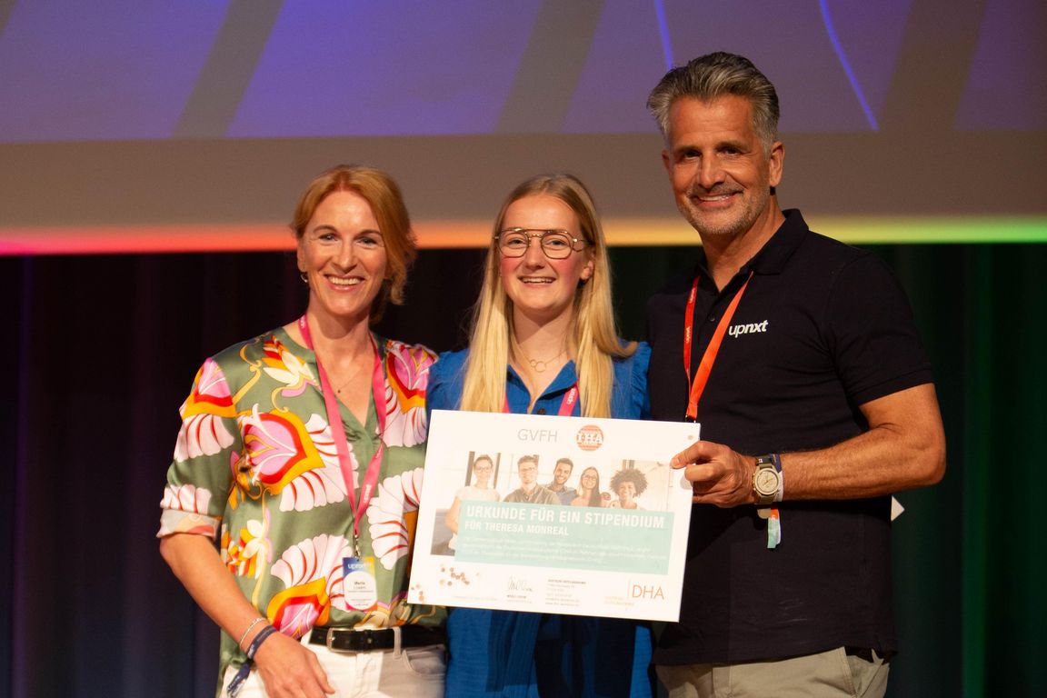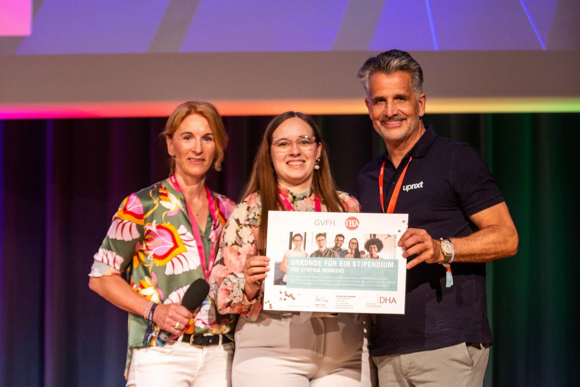 „Wie lässt sich die Bindung von Fachkräften an unsere Branche intensivieren? Ein wichtiger Faktor ist das Bereitstellen attraktiver Entwicklungsmöglichkeiten, wozu auch Weiterbildung gehört. Wir freuen uns, auch in diesem Jahr als GVFH gemeinsam mit der DHA wieder drei Stipendien an Nachwuchskräfte zu vergeben“, sagt Otto Lindner, Vorsitzender des GVFH und des IHA. Die Vergabe an die Gewinner der diesjährigen Ausschreibung Cynthia Heinecke, Janne Naumann und Theresa Monreal fand auf dem upnxt-Festival am 22. Juni 2023 in München statt. Die Festival-Veranstalter elevatr und IHA sponsorten das Ticket und die Übernachtung für die Nachwuchskräfte.