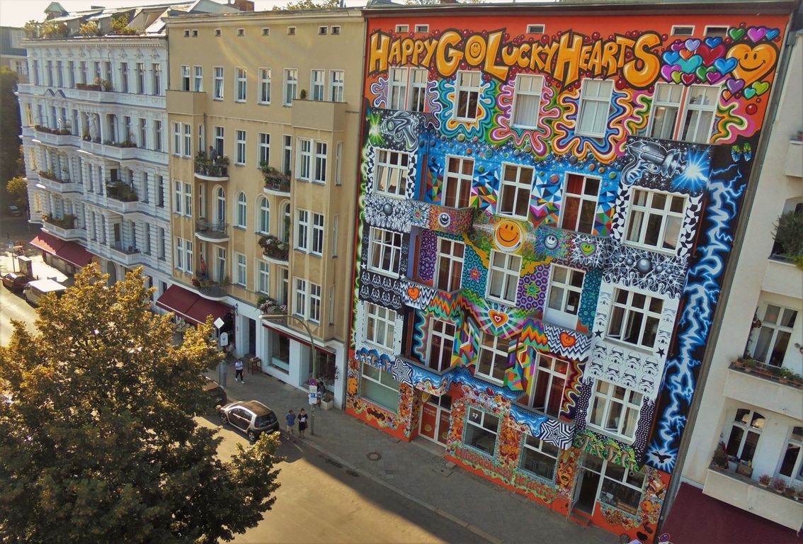 Das Happy Go Lucky Hotel & Hostel im Berliner Bezirk Charlottenburg wird zur Kunstgalerie. Vom 3. Juli bis zum 4. August 2023 werden das Treppenhaus sowie die Innenwände des Hotels von 17 verschiedenen Künstlern neu gestaltet. Die Betreiber des Hotels haben den Kunstwettbewerb “HappyGoLucky Hearts Happening” ins Leben gerufen, um die Energie der kunstvollen Fassade des Happy Go Lucky Hotel & Hostel auch im Gebäude fortzusetzen.