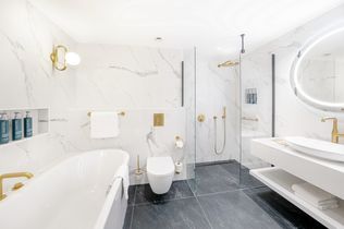 Zu den weiteren Annehmlichkeiten gehören geräumige Badezimmer mit ebenerdigen Duschen und Badewannen, komfortable Wohnbereiche und Zugang zu allen kulinarischen Angeboten und Einrichtungen des Hilton Berlin, um sowohl Geschäfts- als auch Freizeitreisenden einen komfortablen und flexiblen Aufenthalt zu ermöglichen.