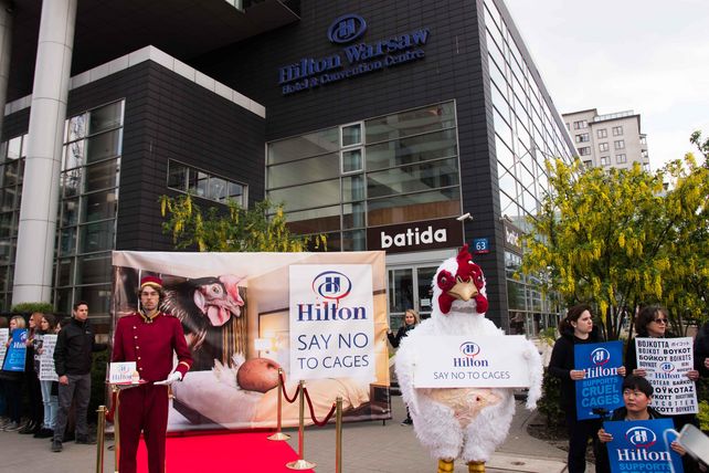Weniger als 24 Stunden nach dem Start einer internationalen Kampagne gegen Hilton hat das Unternehmen angekündigt, künftig weltweit keine Eier aus Käfighaltung mehr zu verwenden.
