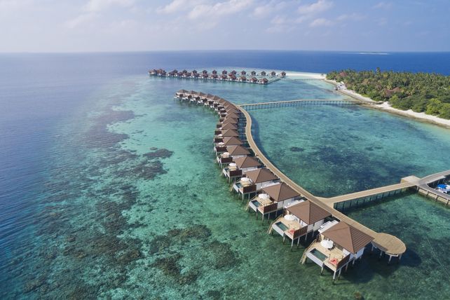 Das sagt HolidayCheck: Mehr Meer geht kaum: Ein Aufenthalt in den Wasserbungalows des Fünf-Sterne-Clubs ist eines der Highlights der Urlauber. Bereits beim Aufstehen lässt sich so der traumhafte Blick über den weißen Sandstrand und das türkisblaue Wasser genießen. Eine Aussicht, auf die man auch beim Zähneputzen dank des modern ausgestatteten Außenbadezimmers nicht verzichten muss.