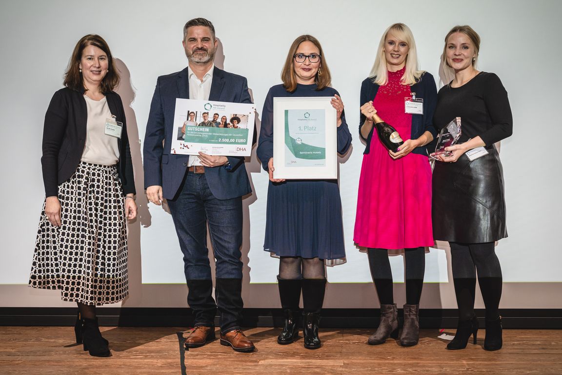 Trotz zahlreicher Bewerbungen für die Kategorie „HR-Strategie Ketten und Kooperationen“ wurde in diesem Jahr ein Konzept von der Jury als so herausragend bewertet, dass es als einziges nominiert und somit geehrt wurde. Der Hospitality HR Award geht an Seminaris, die New Work im Hotellerie-Arbeitsalltag umsetzen. Prof. Dr. Celine Chang von der Hochschule München in ihrer Laudation: „Seminaris hat uns in der Jury überrascht. Diese Hotelkette bietet mit Agile Work, Purpose und Design Thinking Raum für Menschen, Gäste und Mitarbeitende, die über sich hinauswachsen wollen.“