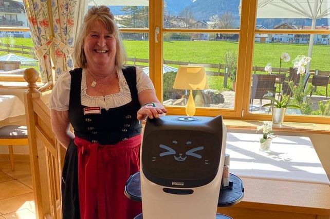 Christine Riegert: Eigentlich sehen wir uns vielmehr als Vorreiter in unserer Region – bisher wurde kein Serviceroboter in der Oberstdorfer Hotellerie eingesetzt. Natürlich gibt es immer skeptische Stimmen und Vorbehalte, und es erscheint vielleicht seltsam, dass in einem Ferienhotel wie unserem ein maschineller Mitarbeiter zum Einsatz kommt. Aber ganz ehrlich: Wir müssen gerade in diesen Zeiten auch einfach mutig sein, etwas ausprobieren und eine Entscheidung für den eigenen Betrieb treffen! Und ja, auch ich selbst und meine Familie haben uns zuvor gefragt, ob eine Maschine eine menschliche Leistung ersetzen kann. Doch genau das wollen wir ja nicht, im Gegenteil: Der Roboter soll unsere Mitarbeiter nicht ersetzen, sondern ihnen im Tagesgeschäft helfen, sie in stetig wiederkehrenden Arbeitsabläufen unterstützen, ganz gezielt Arbeit abnehmen und sie auch körperlich entlasten, etwa beim vielen Laufen und schweren Tragen. Das Zusammenspiel bringt zusätzlich eine große Zeitersparnis für unser Servicepersonal, das in unserem Restaurantbereich sehr viele und lange Laufwege bewältigen muss. Genau diese Zeit soll wiedergewonnen und genutzt werden für den wichtigen, persönlichen Service gegenüber unseren Gästen – also für das leidenschaftliche Gastgebersein.